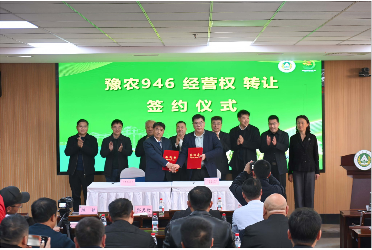 本网讯(通讯员 唐建卫 董纯豪 摄影 段梦悦)2025年12月6日,金沙娱乐城app 在龙子湖校区举办小麦高产技术培训会议暨小麦新品种豫农946、豫农923经营权转让签约仪式。金沙娱乐城app 殷贵鸿教授负责小麦种质创制与新品种培育科技创新团队培育的小麦新品种豫农946和豫农923分别以
