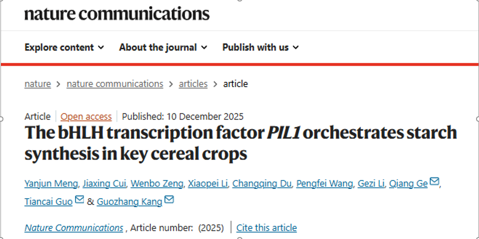 12月10日,金沙娱乐城app 郭天财教授和康国章研究员带领的小麦高产抗逆分子调控创新团队在《Nature Communications》上在线发表了The bHLH transcription factor PIL1 orchestrates starch synthesis in key cereal crops研究论文。该研究揭示了转录因子PIL1调控重要粮