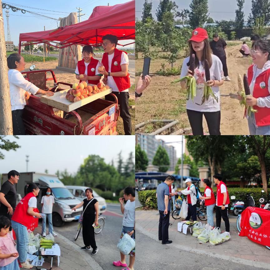 玉米所所长韩卫红的带领下,前往洛阳市偃师区、西工区天天富硒农场、小飞农场等花青素鲜食玉米种植基地,考察当地特色“一年三茬”鲜食玉米种植情况,并与种植户交流微喷灌等田间肥水管理措施、玉米病虫害防治技术。实践团队成员还在田间开展了助农直播,实地介绍花青素鲜食玉米的种植、生长环境,帮助更多人了解花青素鲜食玉米。临行前,师生们带回鲜食玉米、水蜜桃等农产品,在郑州多个社区开展助农销售。