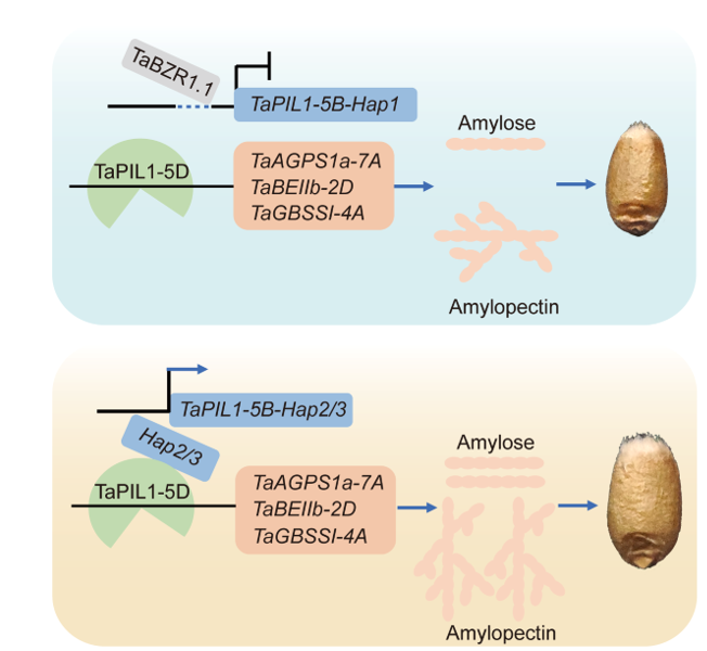TaGBSSI-4A表达,调控了小麦籽粒淀粉的合成;TaPIL1-5B与-5D形成二聚体,增强后者转录激活能力;